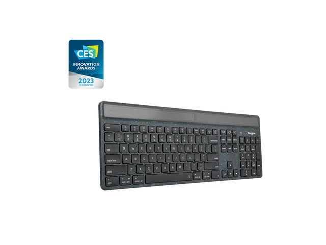 Targus EcoSmart - Näppäimistö - kestävä energian talteenotto - antimikrobinen - taustavalaistu - langaton - Bluetooth 5.0 - QWERTY - Pohjoismaat - näppäinkytkin: saksi-avain - musta - recycled packaging