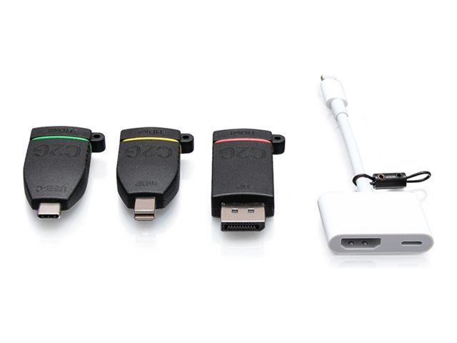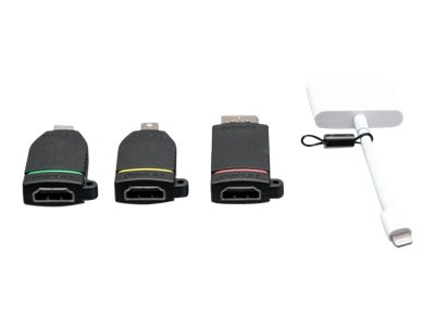 C2G Retractable Universal Mount 4K HDMI Adapter Ring with Color Coded Mini DisplayPort, DisplayPort, USB-C, and Lightning - Videosovitinpakkaus - musta - 4K-tuki C2G29890