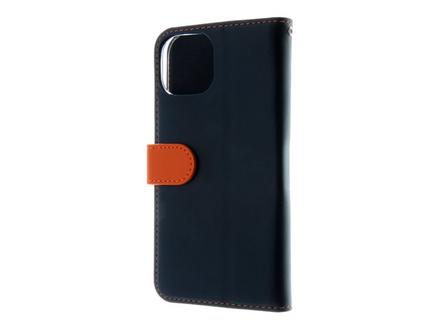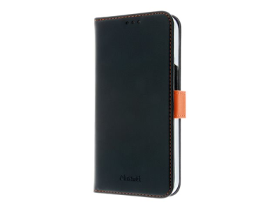 Insmat Exclusive - Läppäkansi matkapuhelimelle - aito nahka, polykarbonaatti, kartonki + paperi + alumiinifolio - musta, oranssi malleihin Apple iPhone 15 650-3192