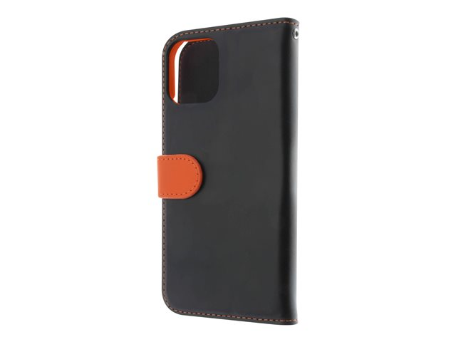 Insmat Exclusive - Läppäkansi matkapuhelimelle - nahka, kartonki + paperi + alumiinifolio - musta/oranssi malleihin Apple iPhone 11 650-2967