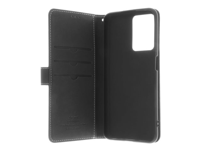 Insmat - Läppäkansi matkapuhelimelle - aito nahka, termoplastinen polyuretaani (TPU), kartonki + paperi + alumiinifolio, puuvillaompeleet - musta malleihin OPPO A16s