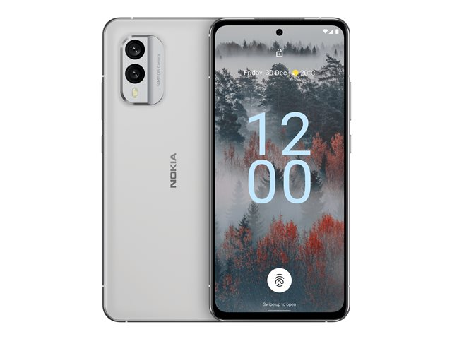 Nokia X30 5G - 5G älypuhelin - Kaksois-SIM - RAM 6 Gt / sisäinen muisti 128 Gt - OLED-näyttö - 6.43" - 2400 x 1080 pikseliä (90 Hz) - 2 takakameraa 50 megapikseliä, 13 MP - front camera 16 MP - jään valkoinen VMA751V9FI1SK0