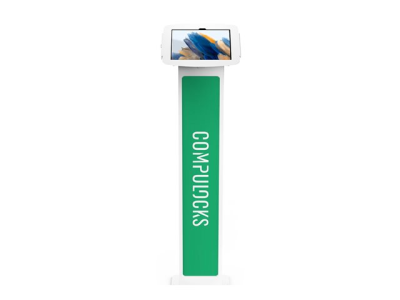 Compulocks Galaxy Tab A8 10.5" Space Enclosure Brandable Floor Stand - Teline malleihin tabletti - tuotemerkillä varustettava - lukittava - korkealaatuinen alumiini - valkoinen -näytön koko: 10.5" - lattialla seisova malleihin Samsung Galaxy Tab A8 (10.5 tuuma)