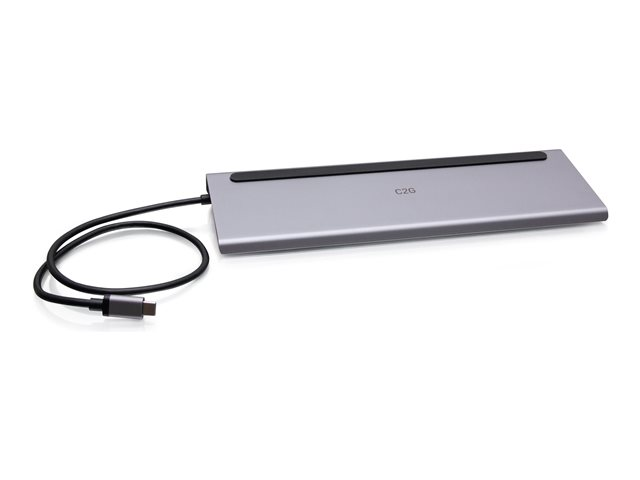 C2G USB-C 10-in-1 Triple Display Docking Station with HDMI, DisplayPort, VGA, Ethernet, USB, SD Card Reader, 3.5mm Audio and Power Delivery up to 100W - 4K 30Hz - Telakointiasema - USB-C - HDMI, DP, VGA - 1GbE